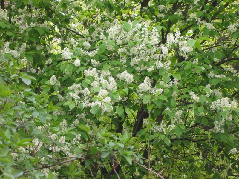 Blüte: April, in 10 - 20cm langen, weißen, süß duftenden Blütentrauben